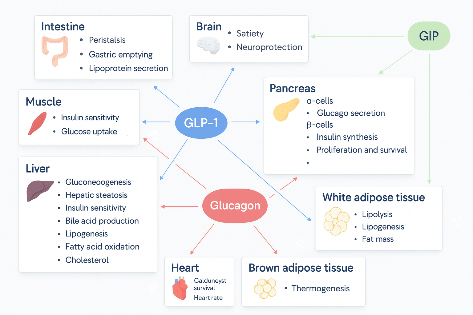 The drug is cleverly designed so that the three different actions work together to maximize the benefits while the GIP component helps to manage the potential side effects.